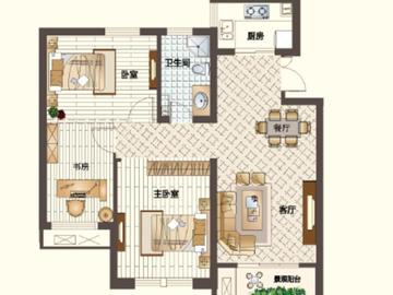 河滨花园,3室2厅, 117.09平米, 100万 精装修 拎包入住 十中书包房