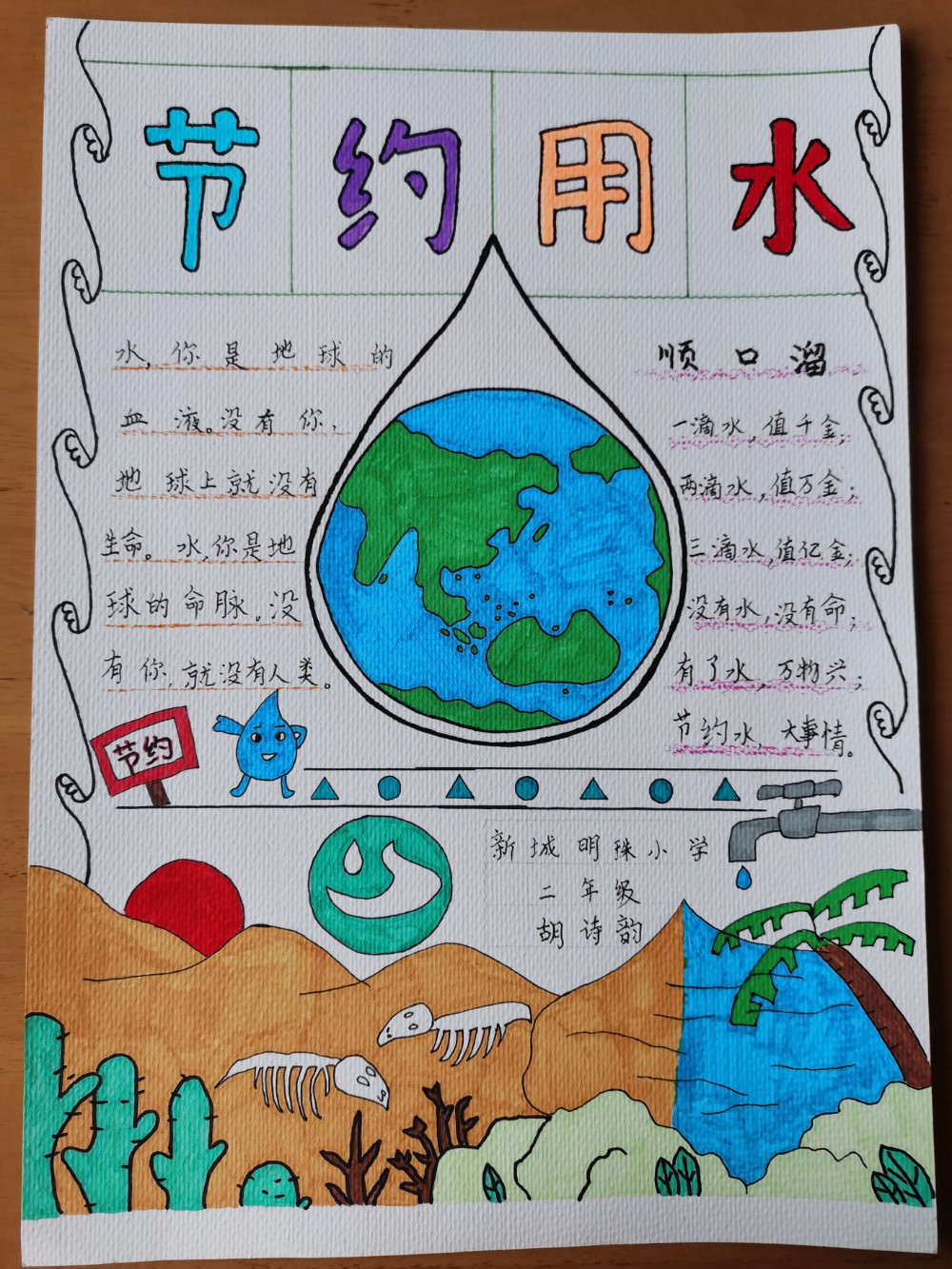 大地万物,飞鸟鱼虫,无不靠水而生。今日节约一滴水,明日便可汇集一海洋。节约用水,莫让我们的生命之源干枯殆尽。
